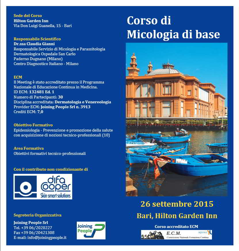 Il test micologico, se eseguito correttamente, può risultare indispensabile per chiarire la diagnosi di patologie dermatologiche e per impostare correttamente la terapia. Perché un test micologico dia risultati attendibili è necessario innanzitutto che il prelievo sia stato eseguito correttamente. Molto spesso un campione prelevato nel punto sbagliato, l’utilizzo di trattamenti antimicotici concomitanti, la mancanza di detersione in sede di prelievo, possono essere la causa di falsi negativi o falsi positivi (crescita di muffe talvolta patogene). La crescita in coltura di una muffa, senza che venga eseguito contemporaneamente l’esame microscopico diretto, come spesso succede in molti laboratori di microbiologia, può porre difficoltà diagnostiche quando la clinica è suggestiva. Può accadere invece che la coltura risulti negativa anche se l’infezione micotica è presente (20-40% dei casi) e ciò può verificarsi per errori nel trasporto del campione, per semina erronea dei frammenti prelevati, per terreni non adeguatamente conservati. Anche in questo caso l’esame microscopico diretto può risultare indispensabile. E’ obiettivo del corso base di micologia dermatologica esporre l’epidemiologia, la clinica e i quadri clinici differenziali principali delle micosi superficiali dermatofitiche e lievitiformi e le metodiche base per l’allestimento di preparati, per la lettura microscopica diretta di frammenti ungueali, squame cutanee e capelli (prelievi, chiarificazione dei vetrini e lettura microscopica diretta) e la scelta di terreni colturali adatti al fine di ottenere risultati diagnostici attendibili.